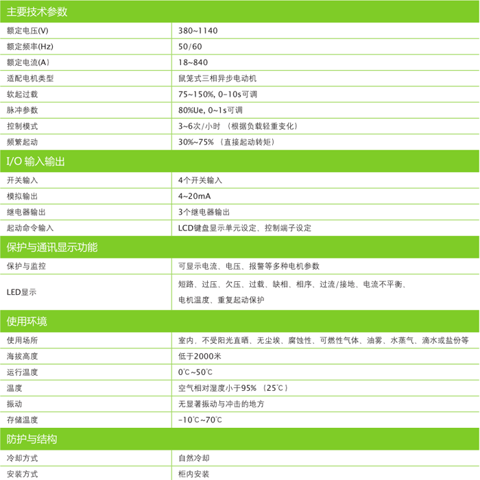 對電網(wǎng)及機(jī)械設(shè)備沖擊小等優(yōu)點,是傳統(tǒng)起動方式理想的更新?lián)Q代產(chǎn)品。適用于石油、冶金、礦山、選煤廠含有爆炸性氣體(甲烷)和煤塵的煤礦井下的重載或使用條件惡劣的三相異步電動機(jī)的軟起動、軟停車控制。